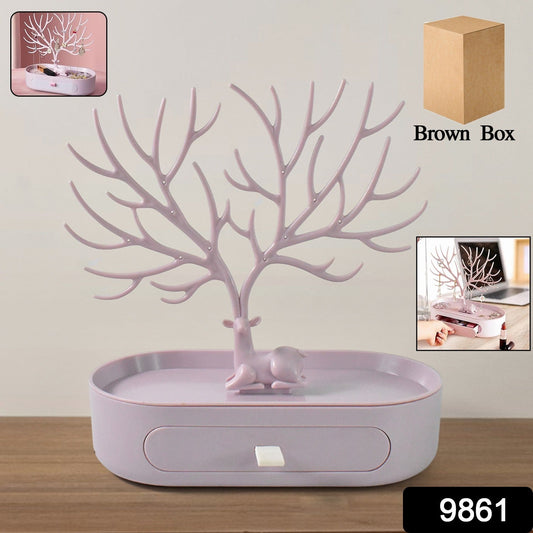 Plastic Jeweller Organizer Earring Holder and Necklace Rack With Drawer (1 Pc)
